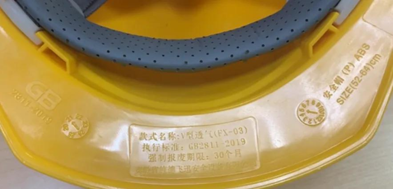 6、看标识标签。安全帽标识由永久标识和制造商提供的信息组成。永久标识位于产品主体内侧,并在产品整个生命周期内一直保持清晰可辨的标识,至少包括以下内容:(1)标准编号;(2)制造厂名;(3)生产日期(年、月);(4)产品名称(由生产厂命名);(5)产品的分类标记;(6)产品的强制报废期限;(7)工业产品生产许可证标识和编号。
