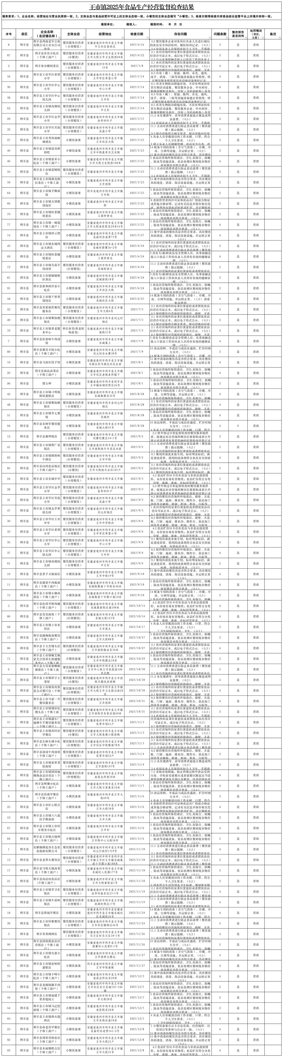 | 名称: | 王市镇2025年食品生产经营监督检查结果 |